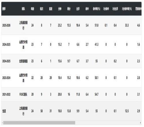 除了21-22賽季是大學(xué)生聯(lián)隊(duì)之外,劉禹彤實(shí)際上是2023-24賽季才開(kāi)始征戰(zhàn)WCBA,上賽季她在山西、北京場(chǎng)均都只有15分鐘,本賽季劉禹彤終于獲得了穩(wěn)定的登場(chǎng)時(shí)間,這也是她生涯新高的場(chǎng)均得分時(shí)間。