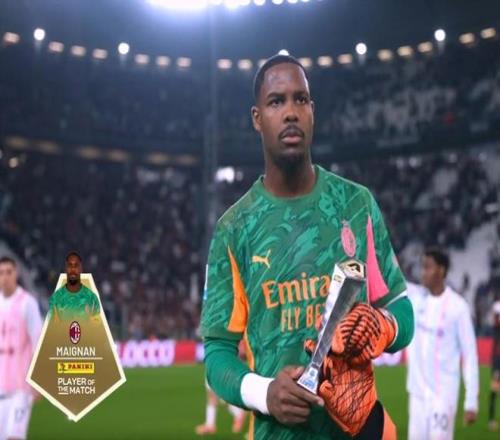 意甲第6輪一場焦點戰(zhàn),尤文圖斯主場0-0與AC米蘭互交白卷。賽后,邁尼昂被意甲官方評選為本場比賽的最佳球員。