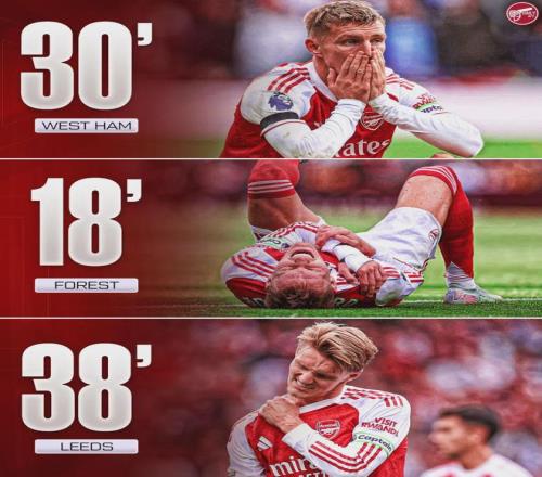 Opta統(tǒng)計,厄德高成為了英超歷史上第一位連續(xù)3場英超比賽首發(fā)出場但卻在半場之前被替換下場的球員……
