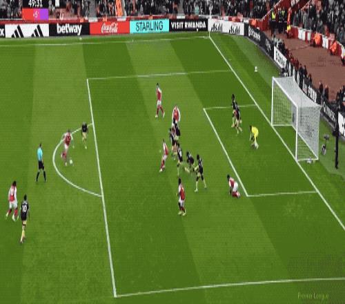 第38分鐘,薩卡策動進(jìn)攻,蘇維門迪的直塞恰到好處,埃澤的怒射被撲出,賴斯補(bǔ)射,槍手取得領(lǐng)先。