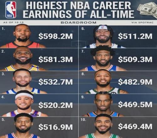 算上新的續(xù)約合同,杜蘭特的職業(yè)生涯薪金總和將達(dá)到5.982億美元,他已經(jīng)超越詹姆斯(5.839億),成為NBA歷史總薪資最多的球員。