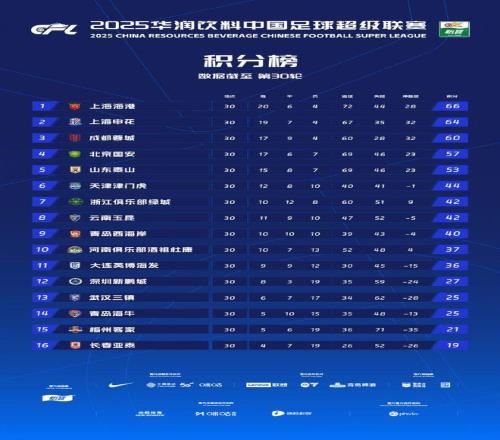11 月 22 日,2025 賽季中超聯(lián)賽第 30 輪 8 場(chǎng)比賽同步鳴哨,這場(chǎng)堪稱近年最刺激的中超收官日,將冠軍歸屬、降級(jí)名額、金靴之爭(zhēng)、亞冠資格四大核心懸念全部推向終點(diǎn)。上海海港客場(chǎng) 1-0 輕取大連英博,以 66 分驚險(xiǎn)衛(wèi)冕,豪奪中超三連冠。成為繼萬達(dá)、恒大后,中國頂級(jí)聯(lián)賽第三支獲此殊榮的俱樂部。隊(duì)史第四座中超冠軍,與山東泰山相差一個(gè)冠軍。雖于客場(chǎng)以 3 - 0 之姿大勝天津津門虎,上海申花卻仍因兩分之差,與冠軍失之交臂,只能屈居亞軍,遺憾踏上亞冠二級(jí)聯(lián)賽的征程。