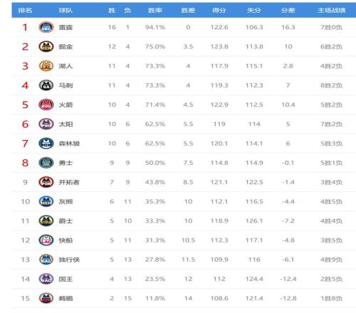 灰熊贏球后2連勝,戰(zhàn)績6勝11負,排名從西部第11升到第10,爵士變成第11,獨行俠輸球后5勝13負,繼續(xù)排名西部第13。