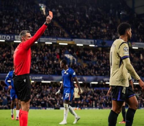 第27分鐘,切爾西在邊路配合撕開巴薩的防線,隨后傳中送到門前,巴薩2名球員解圍失誤,其中孔德不幸打進(jìn)烏龍,讓巴薩0-1落后。半場(chǎng)結(jié)束前,阿勞霍鏟人拿到第2張黃牌被罰離場(chǎng),巴薩不得不少打1人。