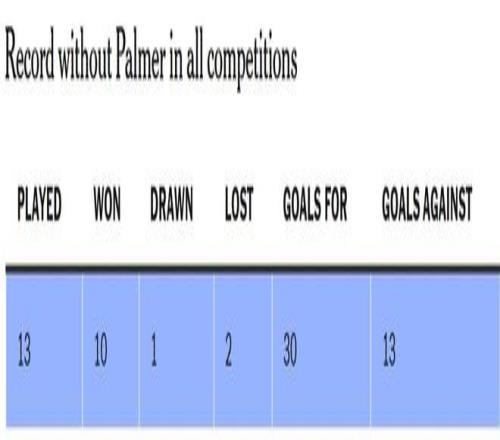 馬雷斯卡的球隊(duì)在沒(méi)有帕爾默的情況下已經(jīng)踢了13場(chǎng)比賽,這主要是因?yàn)樗构蓽鲜軅S捎谧竽_小趾骨折,他上周就已確定無(wú)法在對(duì)陣巴塞羅那的比賽中復(fù)出。