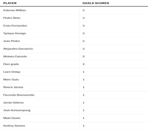 帕爾默在他迄今為止在斯坦福橋完成的兩個(gè)賽季中都是切爾西的頭號(hào)射手,2023-24賽季打進(jìn)25球,2024-25賽季打進(jìn)18球。馬雷斯卡會(huì)很高興地看到,利亞姆-德拉普對(duì)陣巴塞羅那打入第三球的利落破門(mén),確保在帕爾默缺席的過(guò)去兩個(gè)月中,已有16名不同的球員(包括烏龍球)取得過(guò)進(jìn)球。他們列在下方。
